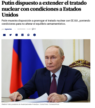 Putin dispuesto a extender el tratado nuclear con condiciones a Estados Unidos | Demócrata