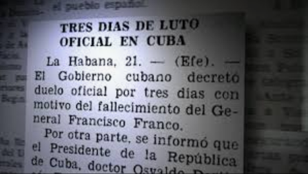 Y así llegamos de nuevo al principio de nuestra historia, a noviembre de 1975, la muerte de Franco. El gobierno cubano, entonces presidido por Osvaldo Dorticóz, emite el decreto de 3 días de luto.